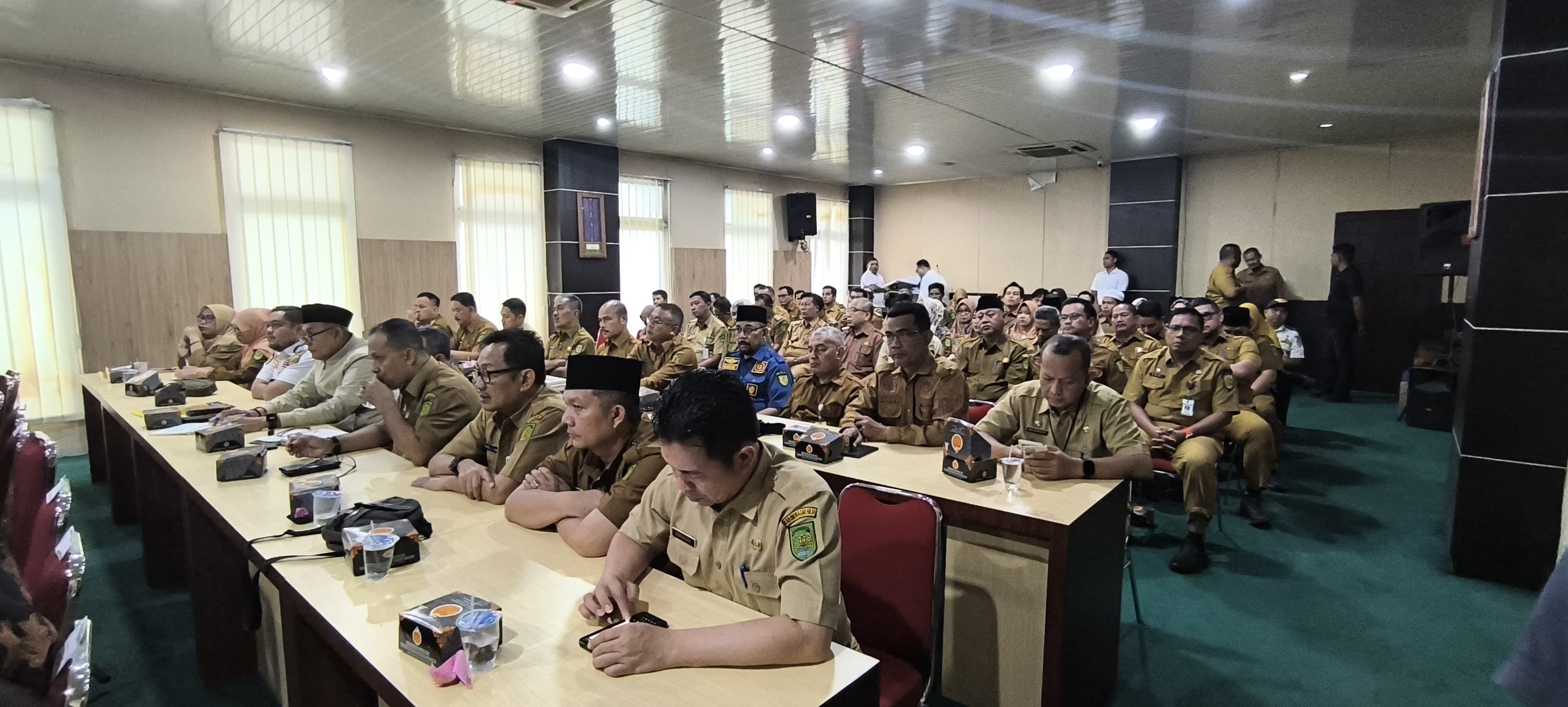 Bertempat di aula lantai 5 Kantor Bupati, pertemuan tersebut dihadiri langsung oleh Bupati Herman, Pj. Sekda, Staf Ahli, Asisten, para Kepala OPD, Camat, dan sejumlah undangan lainnya.