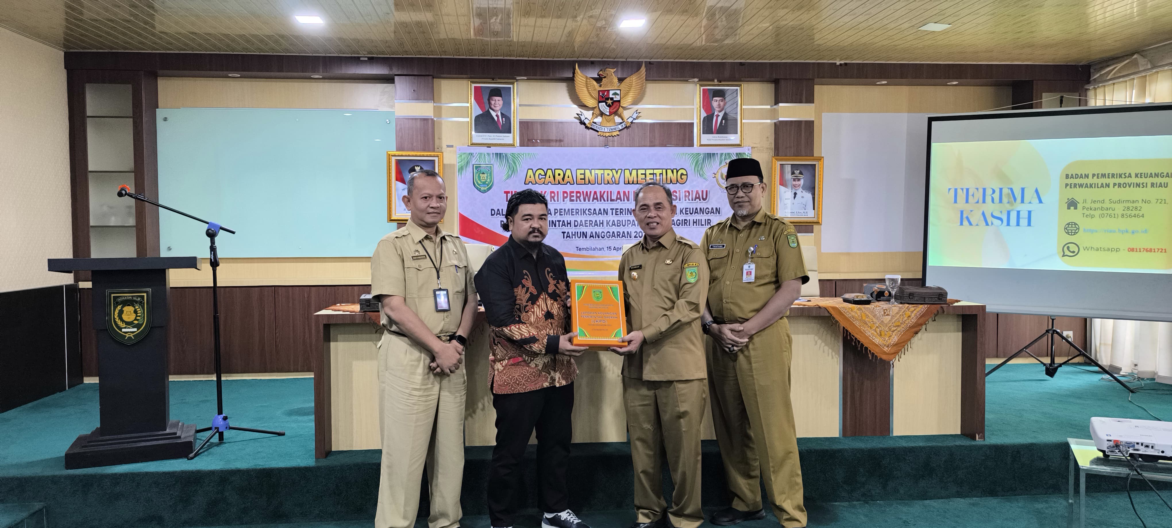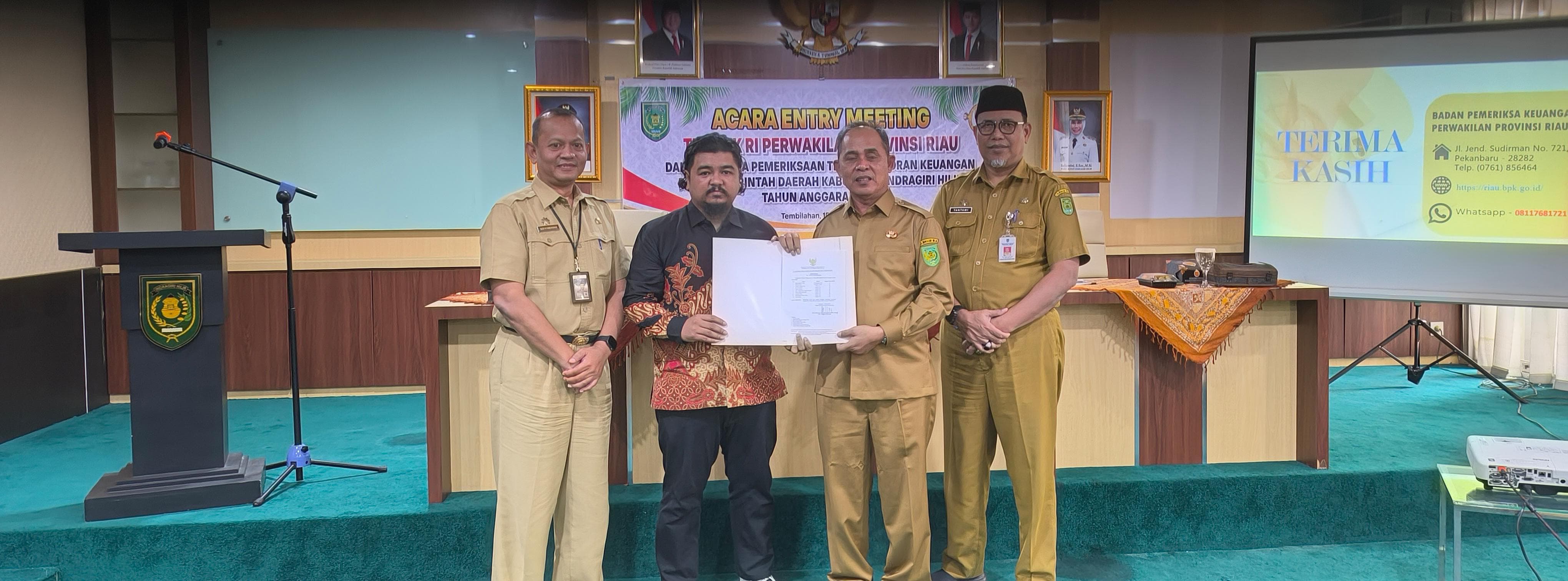 Sebagai penanda dimulainya pemeriksaan, dilakukan penyerahan surat tugas Tim Pemeriksa kepada Bupati Inhil dan penyerahan LKPD Kabupaten Inhil kepada Tim Pemeriksa BPK RI.