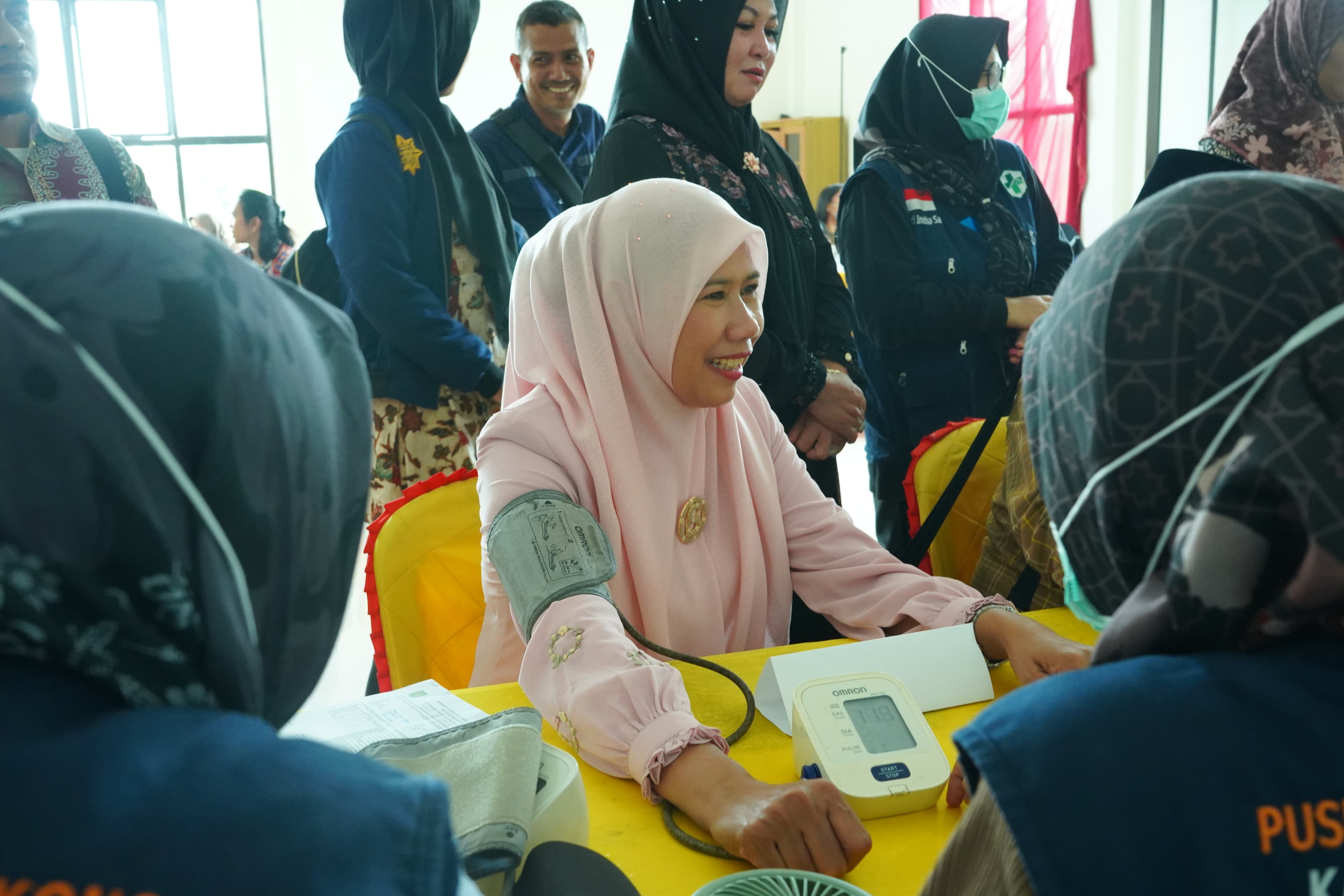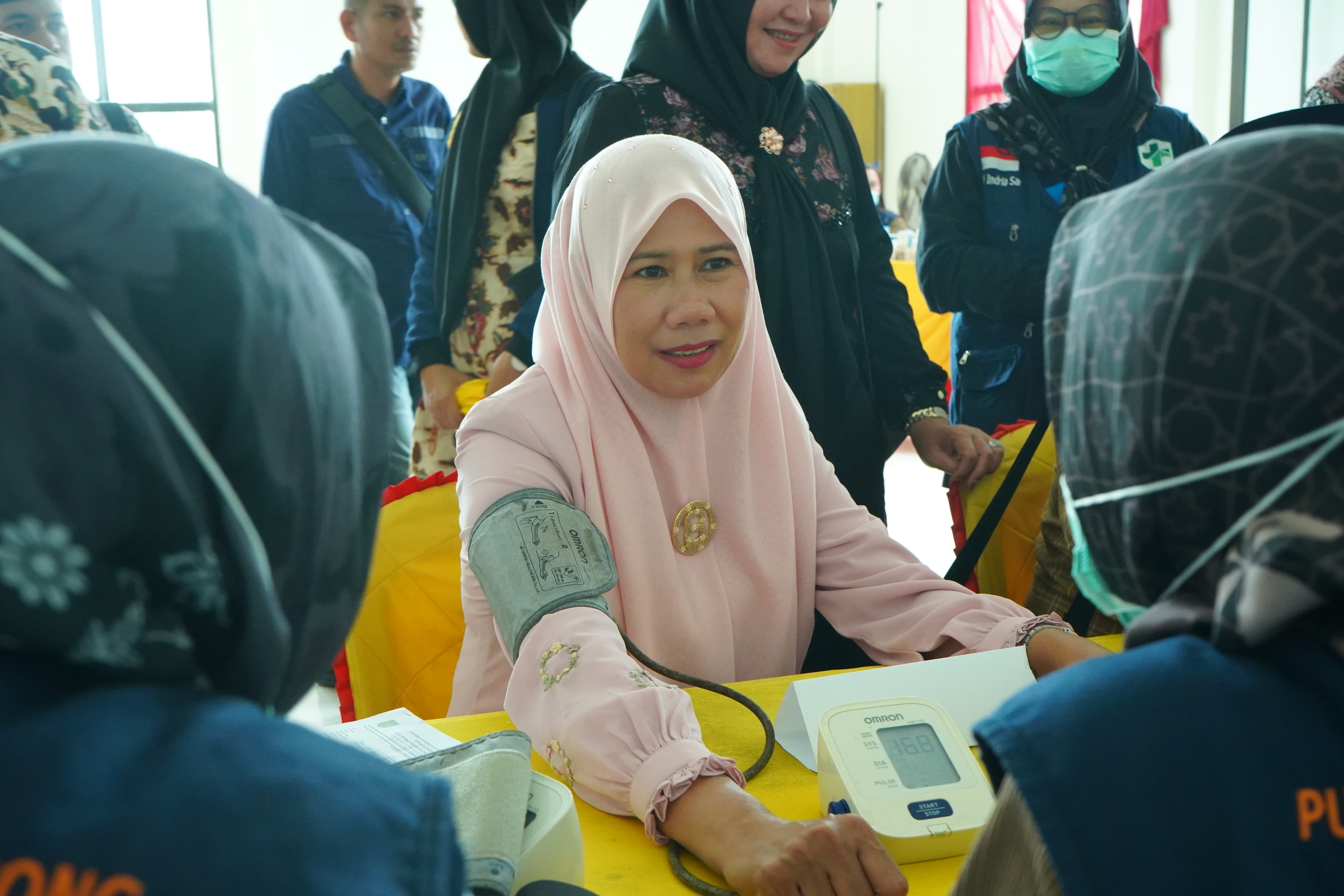 Wabup Yuliantini bahkan ikut mencoba rangkaian tes kesehatan gratis yang digelar di Kantor Camat Teluk Belengkong ini, untuk memotivasi masyarakat.
