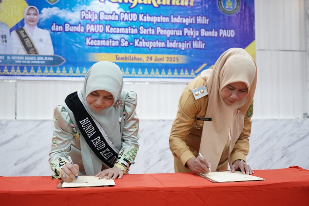 Selain pengukuhan, agenda ini juga dirangkai dengan Penandatanganan Nota Kesepahaman (MoU) dan Perjanjian Kerja Sama (PKS) antara Bunda PAUD Kabupaten Inhil, Pemerintah Daerah, dan mitra kerja strategis di bidang PAUD. Kegiatan ini turut dihadiri Wakil Bupati Inhil, Yuliantini, jajaran pimpinan OPD, para Bunda PAUD kecamatan, serta anggota Pokja PAUD dari berbagai wilayah.