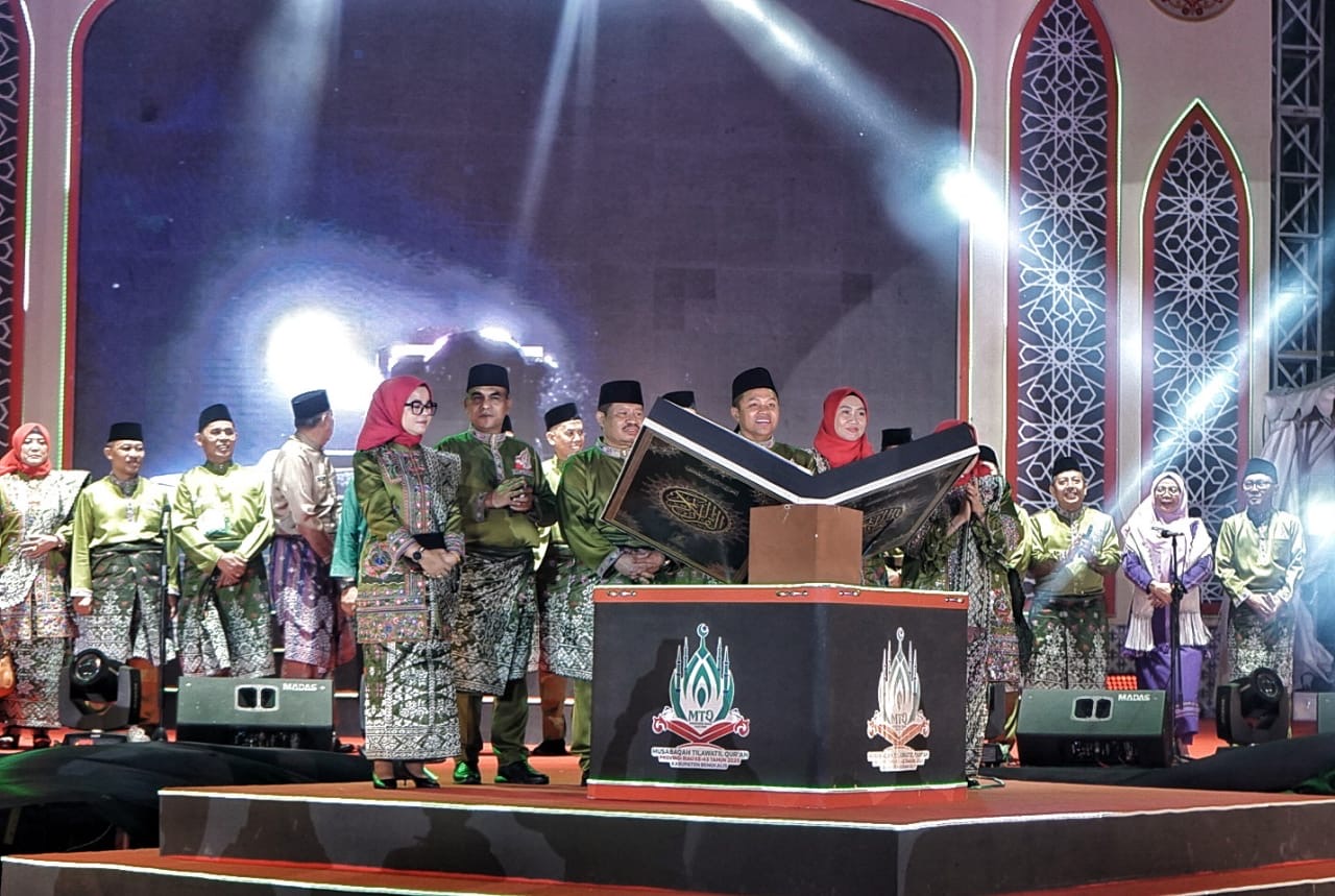 INDOVIZKA.COM– Bupati Indragiri Hilir (Inhil) Herman bersama Ketua TP PKK Katerina Susanti dan jajaran Pemerintah Kabupaten Inhil turut menghadiri Malam Puncak Pembukaan Musabaqah Tilawatil Quran (MTQ) ke-43 Tingkat Provinsi Riau yang digelar di Kabupaten Bengkalis, Sabtu (28/6) malam.