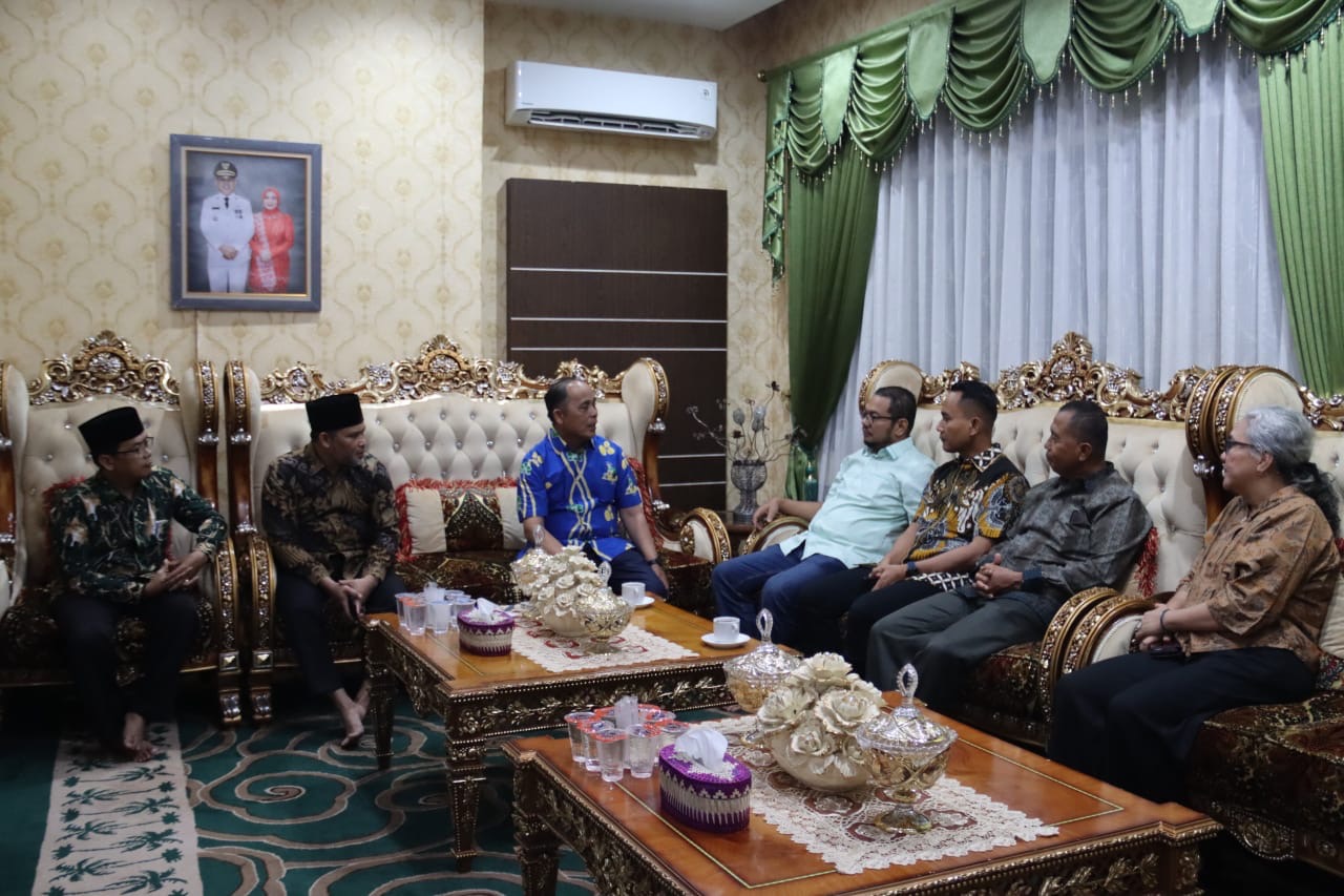 Bupati Indragiri Hilir (Inhil) Herman, sambut kedatangan Ketua Pengadilan Tinggi Agama (PTA) Pekanbaru, M. Sutomo, di Kediaman Dinasnya pada Kamis (17/7) malam.