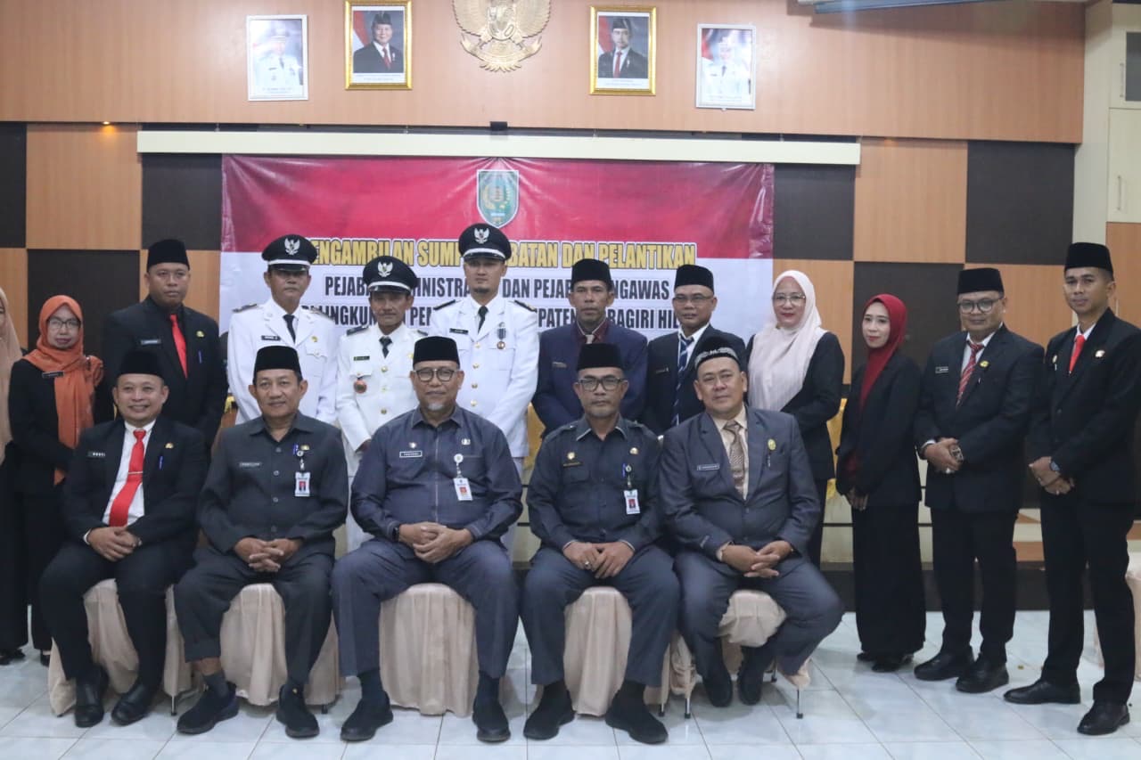 INDOVIZKA.COM – Bupati Indragiri Hilir (Inhil) H. Herman yang diwakili oleh Sekretaris Daerah Kabupaten Inhil, H. Tantawi Jauhari, memimpin prosesi pelantikan dan pengambilan sumpah jabatan sebanyak 19 Pejabat Administrator dan Pejabat Pengawas di lingkungan Pemerintah Kabupaten Indragiri Hilir. Kegiatan tersebut berlangsung di Aula Kantor Bappeda Inhil, Jumat (24 Oktober 2025).