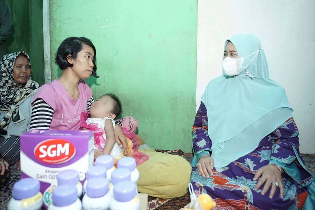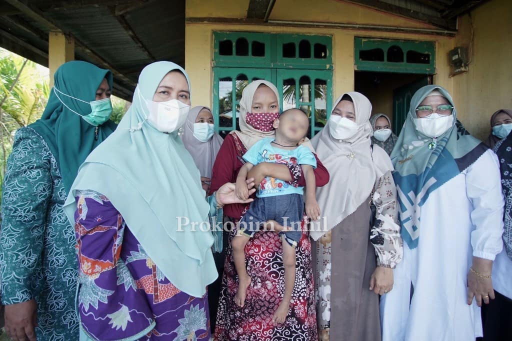 TEMBILAHAN, (INDOVIZKA) - Ketua TP- PKK Indragiri Hilir (Inhil) Hj. Zulaikhah Wardan, S.Sos, M.E yang juga merupakan Bunda PAUD Inhil sekaligus Ketua Gerakan Satu Hati (GSH) Inhil menyambangi dan memberikan bantuan kepada Balita Gizi Buruk di Kecamatan Tembilahan, Rabu (03/11/2021).