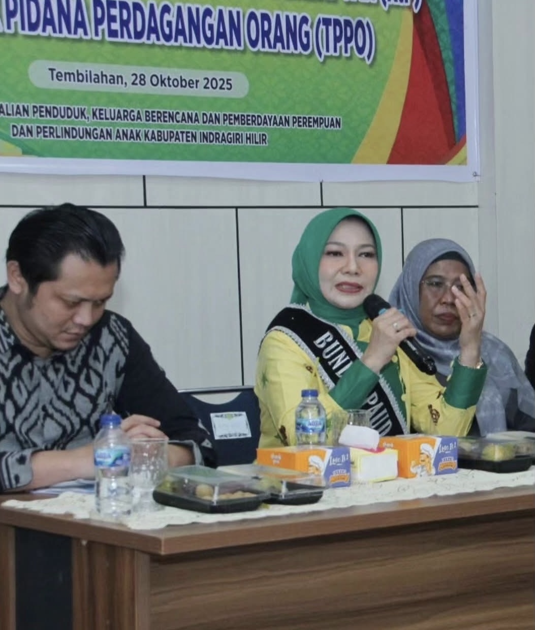 INDOVIZKA.COM – Bunda PAUD Kabupaten Indragiri Hilir (Inhil), Hj. Katerina Susanti, SKM, M.Kes, menghadiri sekaligus membuka kegiatan Penggerakan dan Pemberdayaan Masyarakat dalam Pencegahan Kekerasan terhadap Perempuan (KtP) dan Tindak Pidana Perdagangan Orang (TPPO) yang digelar di Aula Kantor Dinas Pendidikan Kabupaten Inhil, Selasa (28/10/2025).