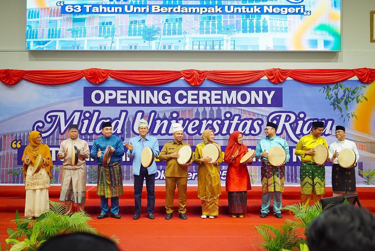 Gubernur Riau (Gubri) Abdul Wahid secara langsung menghadiri opening ceremony Milad ke-63 tahun Universitas Riau. Kegiatan tersebut dilaksanakan di Gedung Student Center UR, Kampus Bina Widya, Pekanbaru, Senin (13/10/2025).