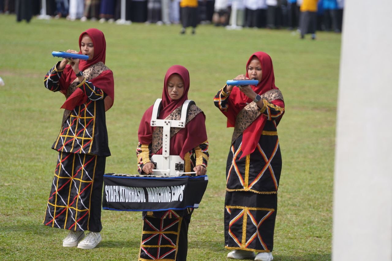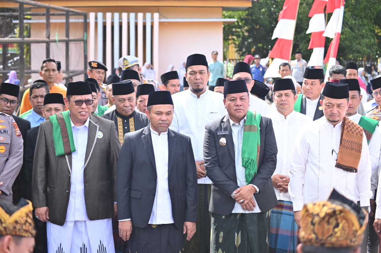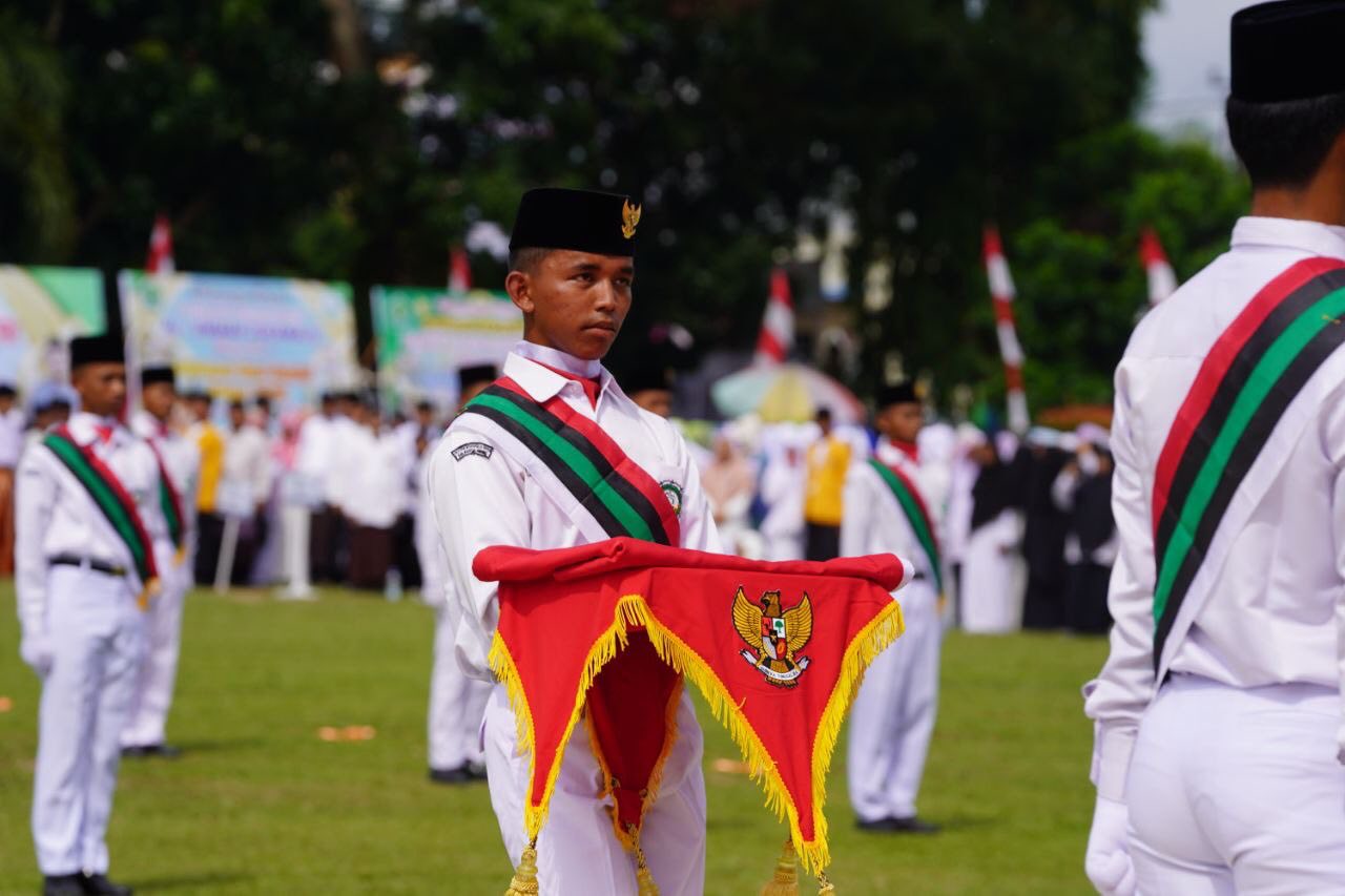 Upacara Peringatan Hari Santri Tingkat Provinsi Riau Tahun 2025 berlangsung khidmat di Lapangan Limuno, Kota Teluk Kuantan, Kabupaten Kuantan Singingi, Rabu (22/10/2025). Gubernur Riau (Gubri) Abdul Wahid bertindak sebagai inspektur upacara.