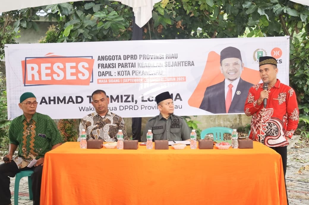 Wakil Ketua DPRD Provinsi Riau Daerah pemilihan (Dapil) Kota Pekanbaru H. Ahmad Tarmizi, Lc., MA melaksanakan Reses masa sidang I (September – Desember) tahun 2025 di lapangan volly Angkatan 45 Kelurahan Rejosari, Kecamatan Tenayan Raya Pekanbaru, Rabu (5/11/2025). Kegiatan silaturahmi yang berlangsung hangat dan penuh kebersamaan tersebut dihadiri oleh RT/RW, Tokoh masyarakat, Tokoh Pemuda, Tokoh Agama, dan warga setempat.