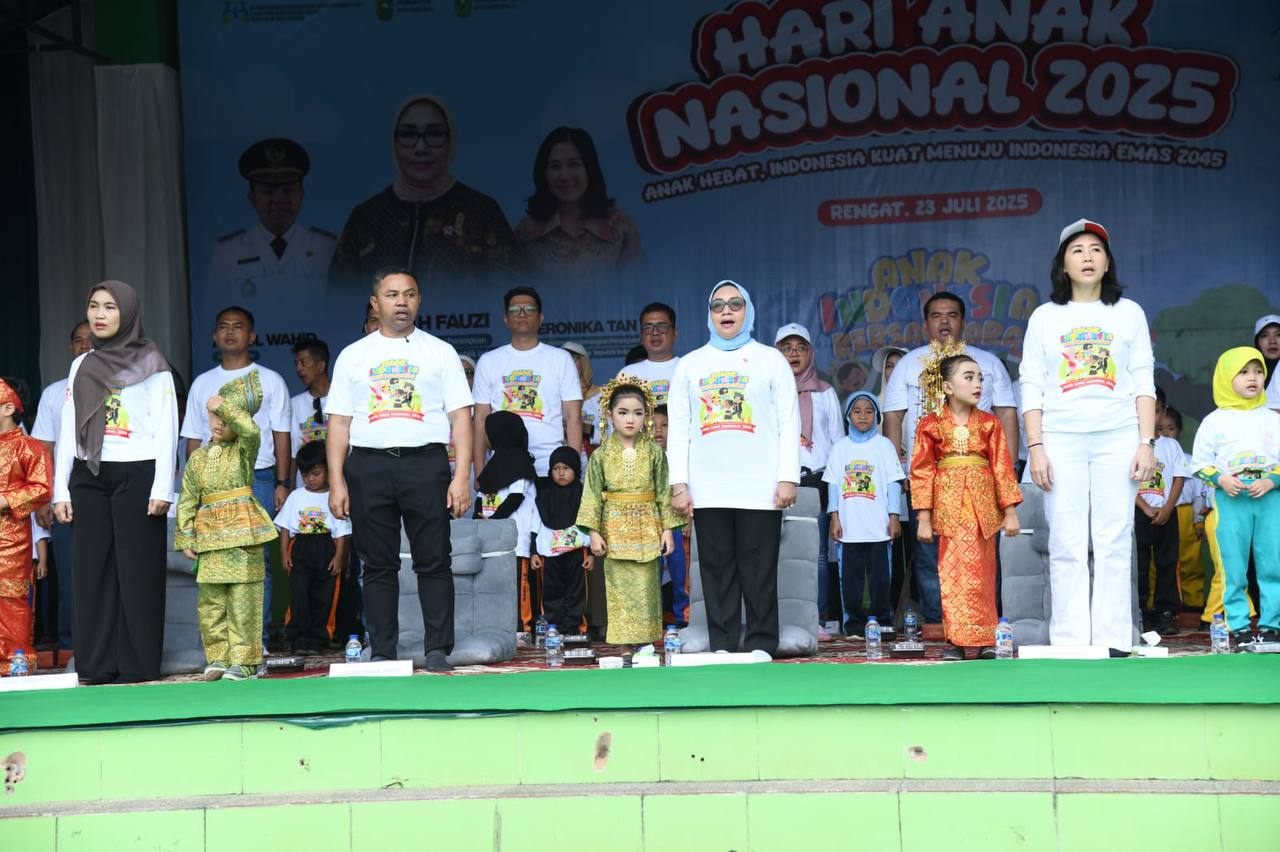 Puncak peringatan Hari Anak Nasional (HAN) ke-41 tahun 2025 di Indragiri Hulu (Inhu), Rabu, (23/7/2025) berlangsung hangat dan penuh makna. Mengusung tema nasional “Anak Hebat, Indonesia Kuat Menuju Indonesia Emas 2045,” Gubernur Riau (Gubri), Abdul Wahid mengajak seluruh elemen masyarakat untuk memberi ruang yang layak, aman, dan membahagiakan bagi anak-anak di Bumi Lancang Kuning.