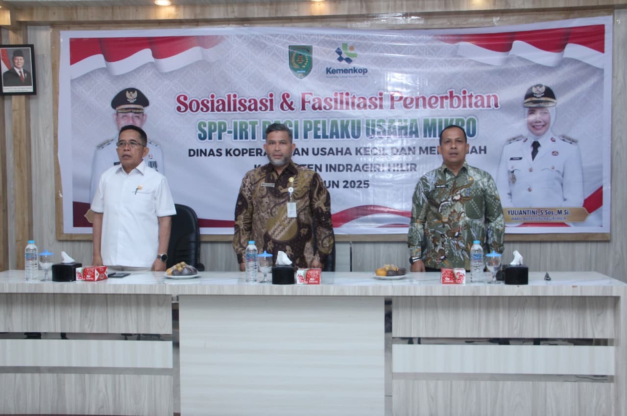 Kegiatan tersebut turut dihadiri unsur Forkopimda Inhil, pimpinan OPD terkait, narasumber, pendamping kegiatan, serta para pelaku usaha mikro peserta sosialisasi.