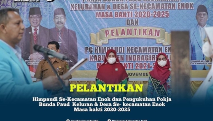 Sebanyak 41 orang Pokja Bunda Paud Kecamatan, Kelurahan dan Desa se Kecamatan Enok dikukuhkan oleh Bunda Paud Kecamatan di Gedung Serba Guna Kantor Camat Enok.