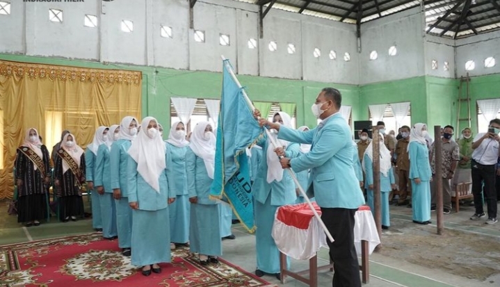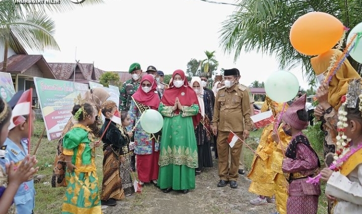 ENOK, (INDOVIZKA) - Ketua Tim Penggerak Pemberdayaan dan Kesejahteraan Keluarga (TP-PKK) Kabupaten Indragiri Hilir (Inhil), Hj. Zulaikhah Wardan, S.Sos, M.E, menyaksikan pengukuhan pengurus Pokja Bunda PAUD dan PC Himpaudi se-Kecamatan Enok masa bakti 2021-2025, Senin (15/11/2021).