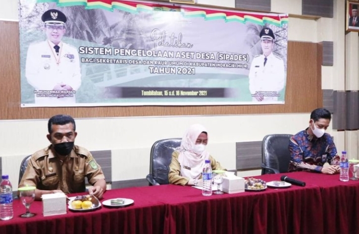 TEMBILAHAN, (INDOVIZKA)- Bupati Kabupaten Indragiri Hilir Drs. HM. Wardan MP yang di wakili oleh Staf Ahli Bupati Indragiri Hilir Bidang Ekonomi Keuangan dan Pembangunan, Hj. Nurlia, SE, MM, membuka secara resmi pelatihan Sistem Pengelolaan Aset Desa (Sipades) bagi Sekretaris Desa dan Kaur Umum di Kabupaten Indragiri Hilir tahun 2021 di Aula Hotel Harmoni, Senin (16/11/2021) Siang.