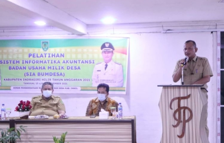 TEMBILAHAN, (INDOVIZKA)- Bupati Indragiri Hilir (Inhil), Drs. H. M. Wardan, MP diwakili Sekretaris Daerah Drs. H. Afrizal, MP membuka secara resmi Pelatihan Sistem Informatika Akutansi Badan Usaha Milik Desa (SIA BUMDESA) Kabupaten Inhil, di Hotel Tembilahan Pratama, Senin (15/11/2021).