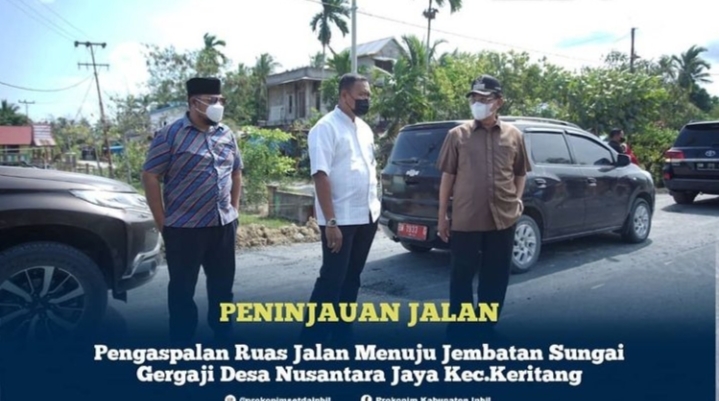 KERITANG, (INDOVIZKA) -Disela kegiatan menghadiri wisuda Rumah Tafizd Quran Ar Rasyid yang berada di Desa Pasar Kembang, Bupati Inhil HM Wardan berkesempatan meninjau pekerjaan Proyek penimbunan Jalan yang sudah memasuki tahap pengaspalan di jalan Lintas Utara Desa Nusantara Jaya Kecamatan Keritang, Sabtu ( 04/12/2021 ).