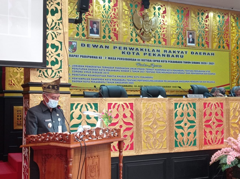 Selain jawaban pemerintah terhadap pandangan umum fraksi terhadap perubahan Perda Nomor 5 Tahun 2021, DPRD Pekanbaru juga sekaligus menggelar rapat paripurna penyampaian laporan pertanggungjawaban pelaksanaan APBD Kota Pekanbaru Tahun 2020.