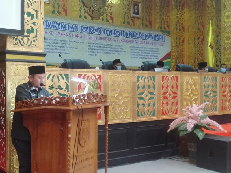 Sebelum pengesahan, DPRD Pekanbaru terlebih dahulu menyampaikan laporan Pansus terhadap pembahasan Ranperda Inisiatif Tentang Penanganan Covid-19. Laporan pansus tersebut disampaikan oleh juru bicara Pansus Nurul Ikhsan.
