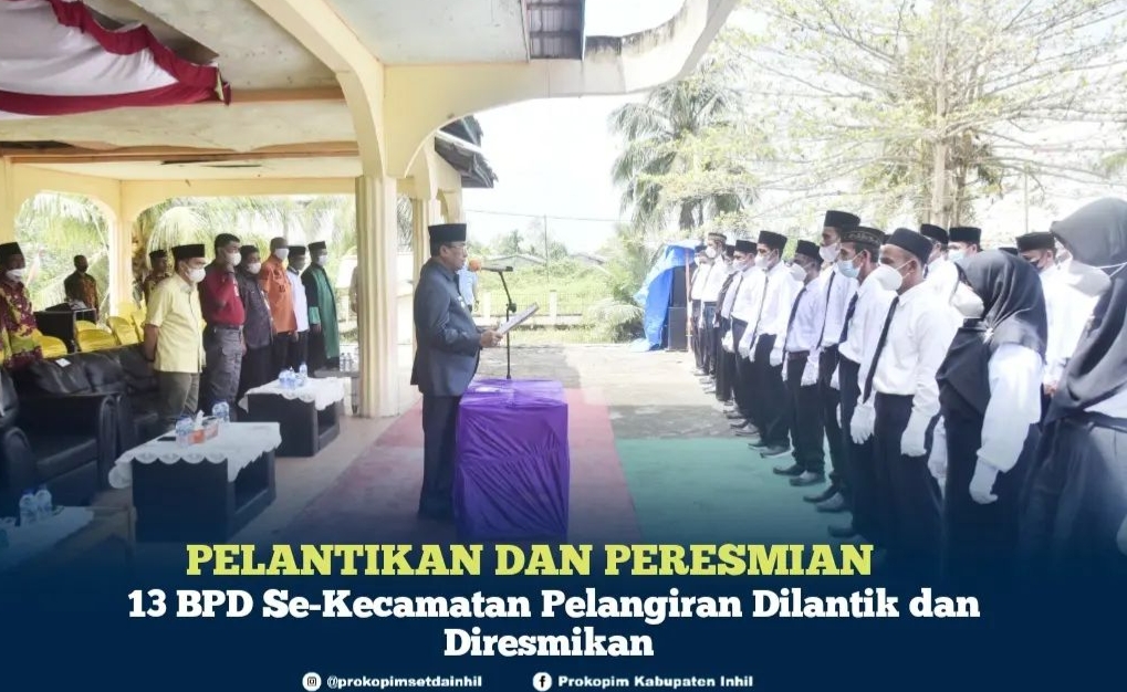 Untuk diketahui pelantikan dan peresmian 13 BPD Desa Se-Kecamatan Pelangiran oleh Bupati merupakan Pelantikan dan Peresmian BPD yang terakhir di Kabupaten Indragiri Hilir.