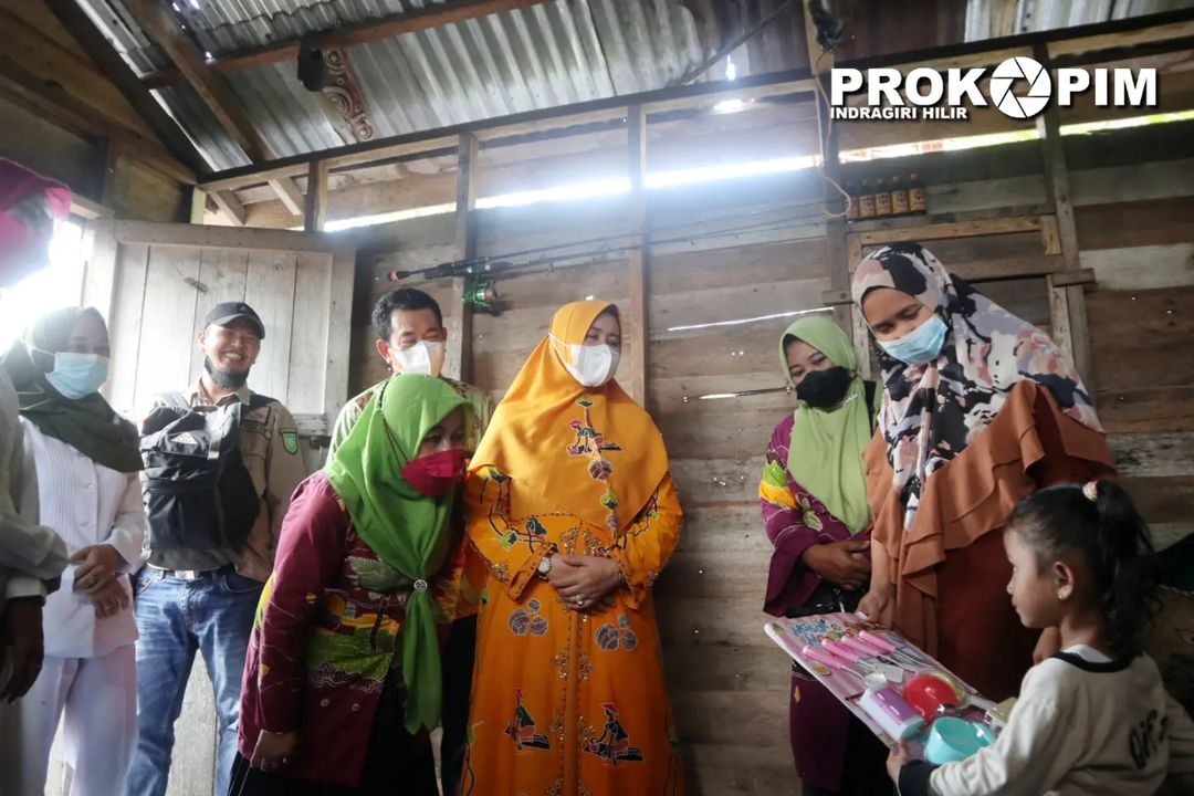PELANGIRAN, (INDOVIZKA)- Usai menyaksikan pengukuhan Pokja Bunda Paud dan Pelantikan PC Himpaudi Kecamatan Pelangiran, Ketua TP PKK Indragiri Hilir (Inhil) Hj. Zulaikhah Wardan yang juga merupakan Bunda PAUD Inhil sekaligus Ketua Gerakan Satu Hati (GSH) Inhil menyambangi dan memberikan bantuan kepada Balita Gizi Kurang di Kecamatan Pelangiran, Kamis (20/01/2022).