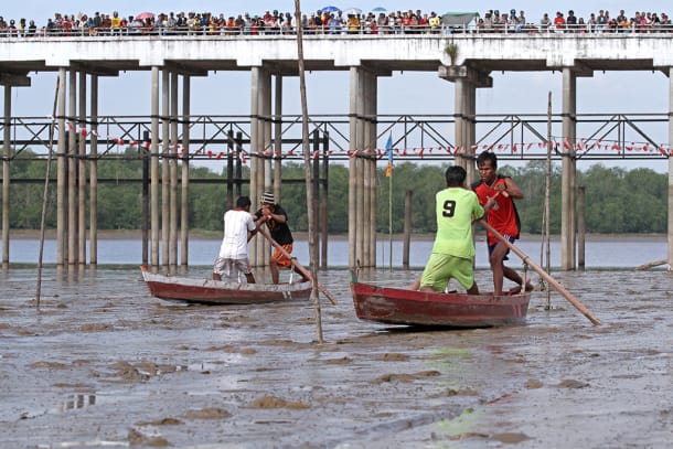 Kemudian ada juga Sampan Leper, yang tak ubahnya seperti balapan mendayung perahu. Namun mereka melakukannya bukan di atas air, melainkan di atas lumpur. Event ini bisa dengan mudah kamu jumpai di Kuala Getek, Kecamatan Tembilahan.