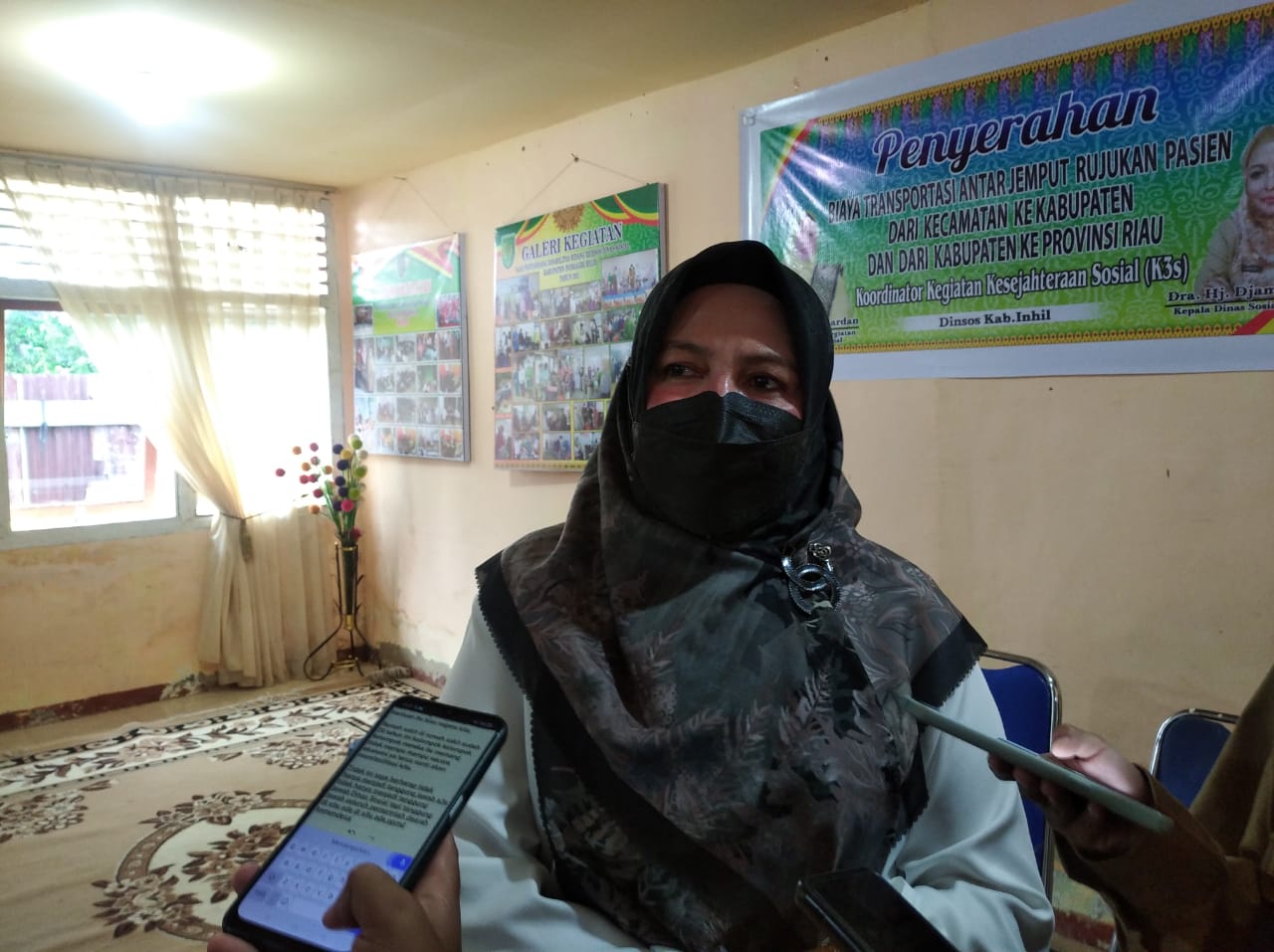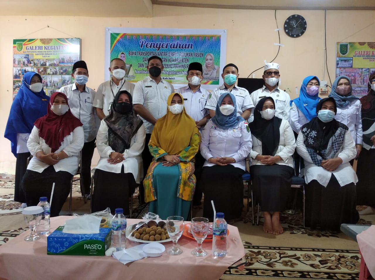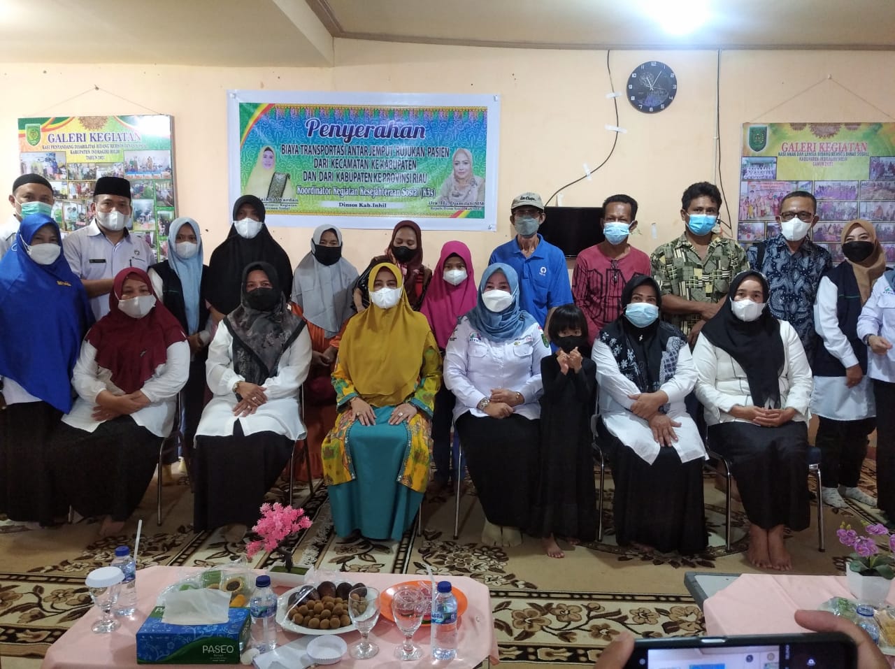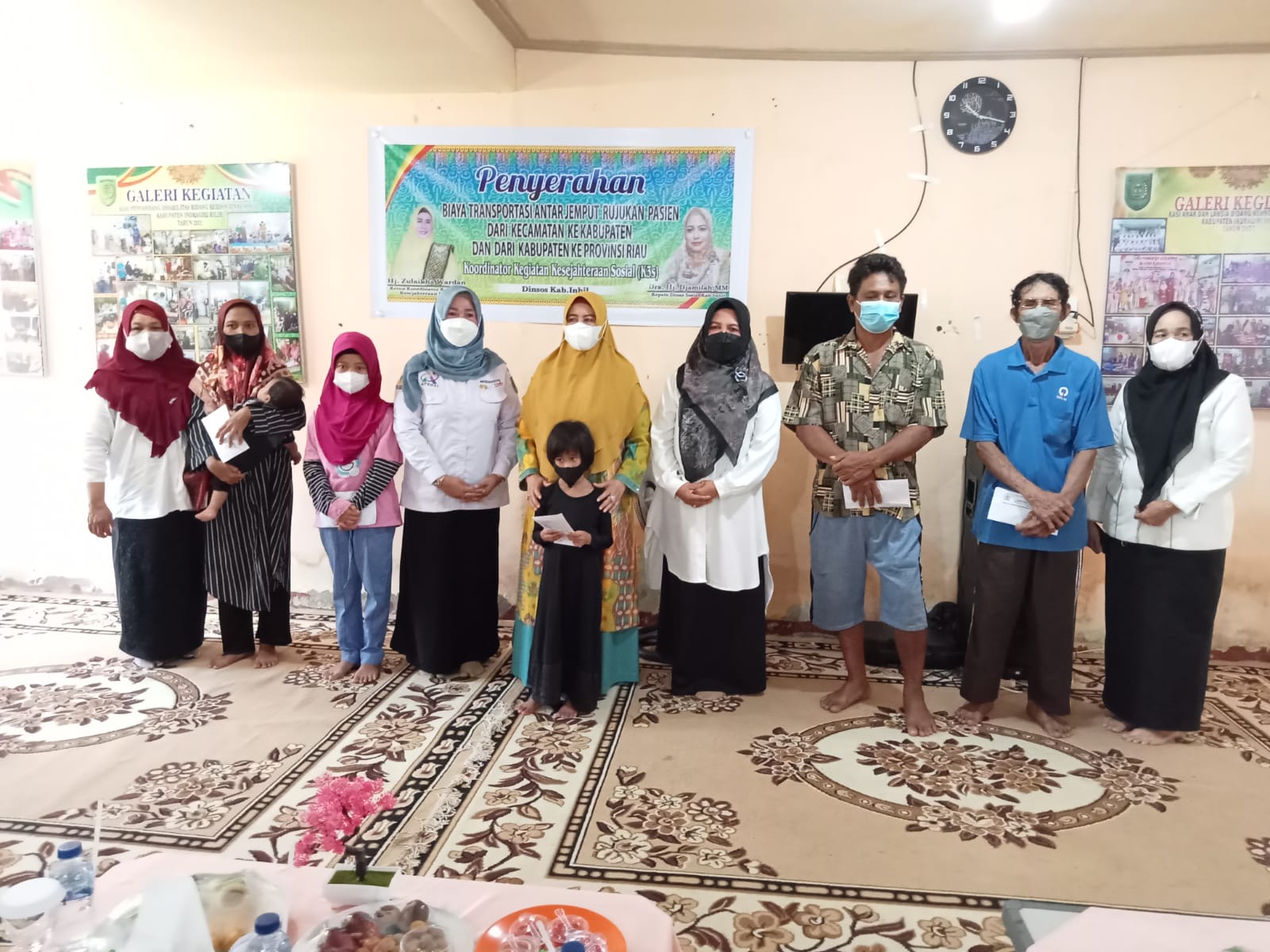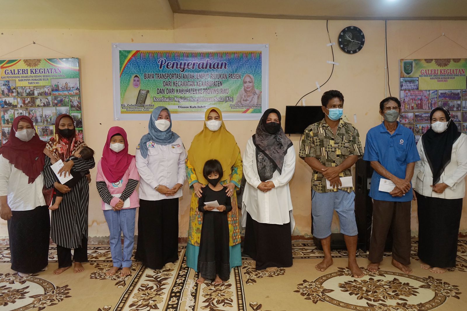 TEMBILAHAN,(INDOVIZKA) - Dinas Sosial (Dinsos) Kabupaten Indragiri Hilir (Inhil) bersama Koordinator Kegiatan Kesejahteraan Sosial (K3S) menyerahan biaya transportasi antar jemput rujukan pasien di Rumah Singgah Baiturrahman Dinsos, Jalan Bunga Tembilahan, Rabu (9/3/2022).