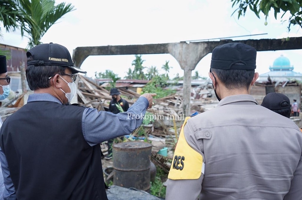 RETEH, (INDOVIZKA)- Jum'at (16/4/2021) Pemerintah Kabupaten Indragiri Hilir yang dipimpin Bupati HM.Wardan turun lansung meninjau sekaligus memberikan bantuan kepada korban angin puting beliung yang melanda Desa Sanglar Kecamatan Reteh, pada hari Kamis tanggal 15 April 2021 pada pukul 16:30 wib petang semalam.