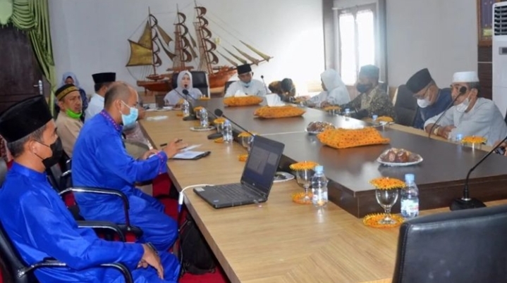 TEMBILAHAN - Hj Zulaikhah Wardan selaku Ketua Tim Gerakan Satu Hati memimpin rapat persiapan launching bantuan Baznas Kabupaten Inhil untuk tahun 2022 dengan di ikuti stake holder terkait di ruang rapat kediaman Bupati Indragiri Hilir Jl Kesehatan No 1 Tembilahan, jum'at (18/03/22).