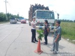 Personil Sat lantas Evakuasi Truk Cold Diesel Tabrak Tiang Lampu Jalan di Depan SMP Bernas